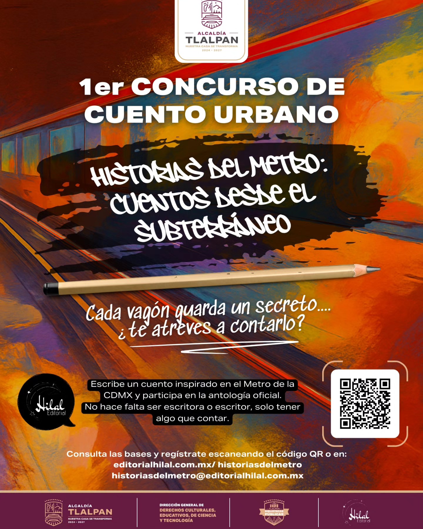 Para difusión inmediata Se amplía la convocatoria “Historias del Metro: Cuentos desde el Subterráneo” hasta el 20 de noviembre Editorial Hilal invita a seguir enviando relatos urbanos sobre el corazón subterráneo de la Ciudad de México Ciudad de México, noviembre de 2025. – Ante la gran respuesta del público y el interés de nuevos participantes, … Sigue leyendo BOLETÍN DE PRENSA – Se amplía la convocatoria “Historias del Metro: Cuentos desde el Subterráneo”